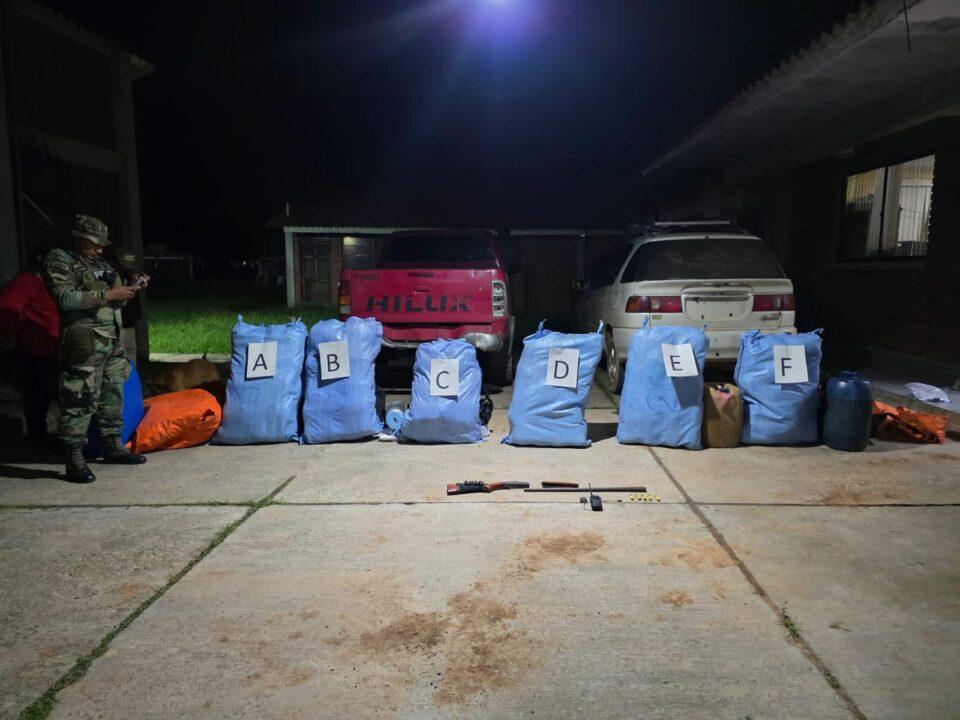La Fiscal especializada, Marcelina Coca, indicó que el 10 de mayo del presente, la policía realizó un operativo de control de la FELCN, en la carretera Santa Cruz – Trinidad altura Puesto de la Tranca Los Tajibos, donde se ha secuestrado 127.500 gramos de marihuana, dos movilidades una camioneta roja y un Noah de color blanco teniendo dentro del operativo seis aprendidos encontrándose en el automóvil color blanco la sustancia controlada y dentro de la camioneta el arma junto con las municiones.
