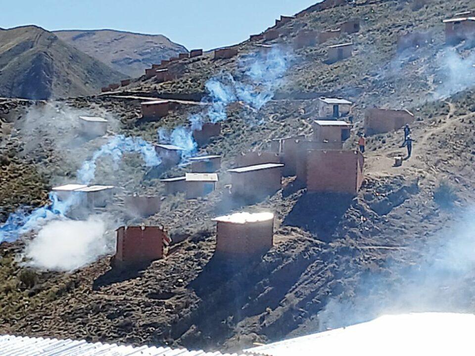 Los efectivos policiales se vieron obligados a utilizar gases lacrimógenos para dispersar a los avasalladores que desde hace tres meses usan la violencia para consolidar la toma de los terrenos de Cantumarca con el fin de asentarse y construir viviendas.