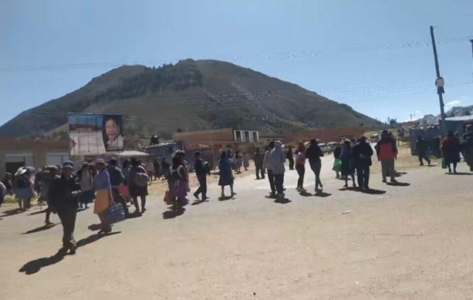 Los pobladores, tras una marcha, instalaron el bloqueo a la altura de la Ckasa, informó el periodista Jorge Peñaranda.
