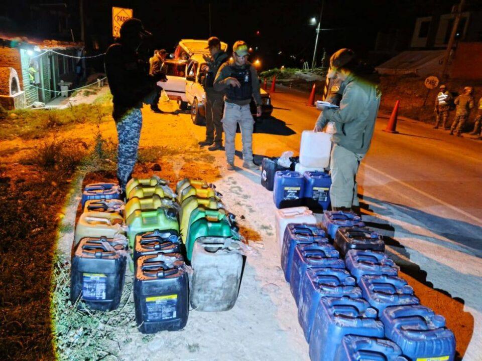 “Gracias a la oportuna intervención del personal policial, se procedió a la recuperación de estos 37 bidones con contenido líquido, presuntamente combustible, informando lo sucedido a las instancias correspondientes para su conocimiento y seguimiento conforme a los procedimientos establecidos”, señala el informe policial.