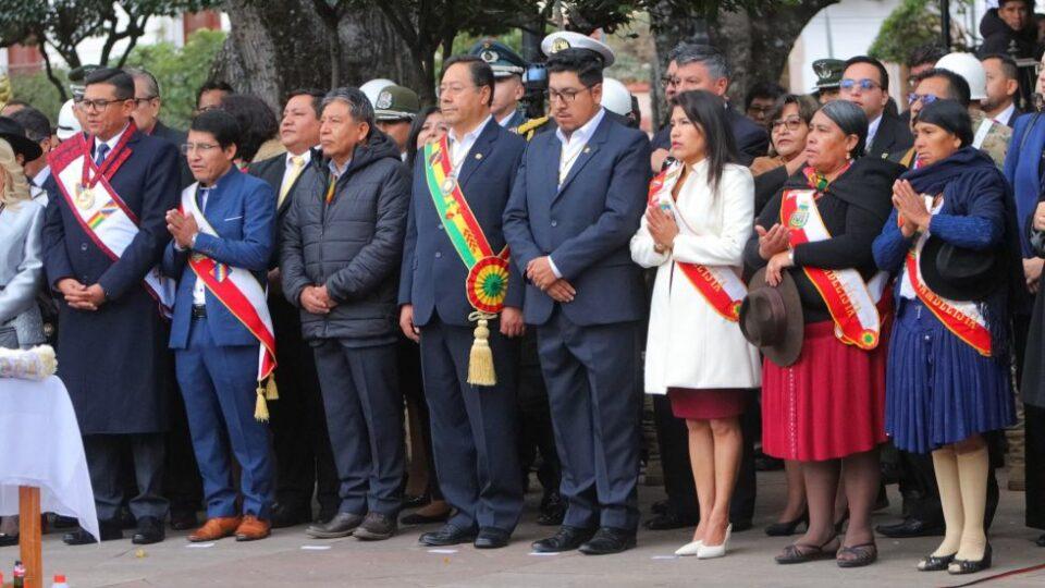 “Con gran orgullo y respeto, hoy participamos en la ofrenda floral e iza de nuestras banderas en la ciudad de Sucre, celebrando el 216 aniversario de la gesta libertaria de Chuquisaca, un hito que encendió la llama de la revolución en todo el continente”, publicó el jefe de Estado en sus redes sociales.