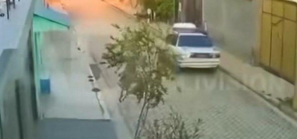 En imágenes se puede ver que el taxi blanco aparece en la calle, se estaciona por unos minutos. Desde el interior del vehículo, alguien abre la puerta trasera, y una joven es dejada en la acera, luego el motorizado se retira.