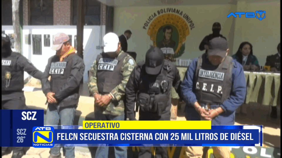 Santa Cruz, 31 de may 2025 (ATB Digital).- Durante un operativo en Santa Cruz, la Fuerza Especial de Lucha Contra el Narcotráfico (FELCN) y la Agencia Nacional de Hidrocarburos (ANH) secuestraron una cisterna que transportaba más de 20 mil litros de diésel con fines ilícitos. Cuatro personas fueron aprehendidas por almacenamiento ilegal.