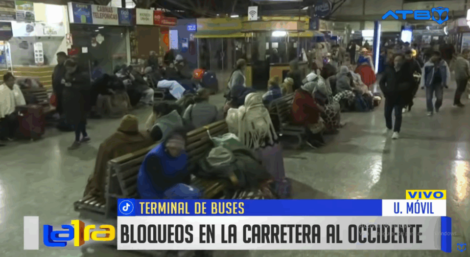 Cochabamba, 2 de junio 2025 (ATB Digital).- Las salidas hacia el occidente del país desde la Terminal de Buses de la ciudad de Cochabamba se encuentran suspendidas debido a bloqueos en la ruta protagonizados por seguidores de Evo Morales. Según el reporte de la Unidad de Informaciones, los viajes fueron restringidos de manera momentánea mientras persista el conflicto en carretera. Pasajeros que se encuentran en las inmediaciones de la terminal manifestaron que sus buses tuvieron que retornar a la ciudad debido a la imposibilidad de continuar su trayecto. Asimismo, pidieron una pronta solución a la situación, expresando preocupación por el perjuicio ocasionado.
