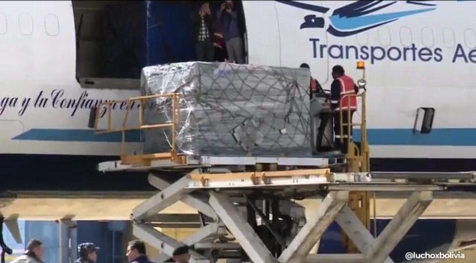 Acompañado del ministro de Desarrollo Productivo, Zenón Mamani, y el comandante de las Fuerzas Armadas, Jaime Zabala, el presidente Luis Arce recibió este nuevo cargamento en la Base Aérea Militar de la ciudad de El Alto, que se suma a los que arribaron el viernes a través del puente aéreo habilitado por el Gobierno para aminorar el impacto de la protesta evista.