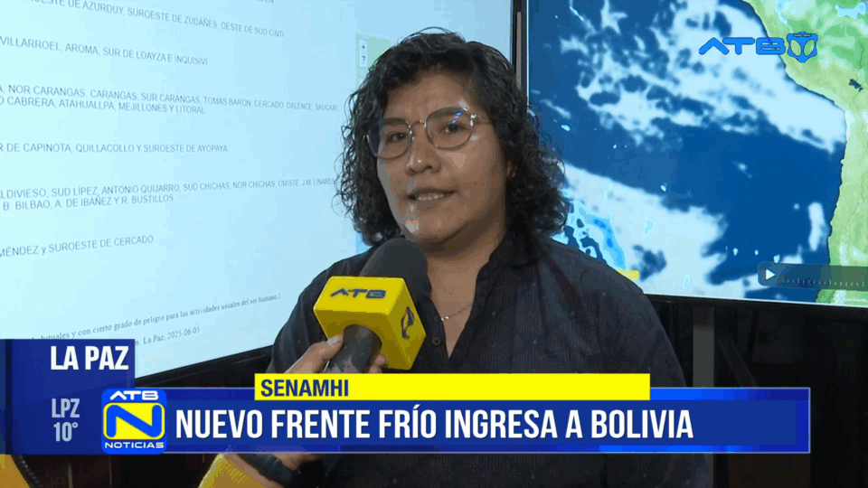 La Paz, 7 junio 2025 (ATB Digital).- El Servicio Nacional de Meteorología e Hidrología (Senamhi) informó que un frente frío ingresará desde el Chaco hasta Santa Cruz. Se prevé un descenso continuo de temperaturas hasta el mes de agosto, por lo que se recomienda a la población abrigarse y tomar precauciones para evitar enfermedades.