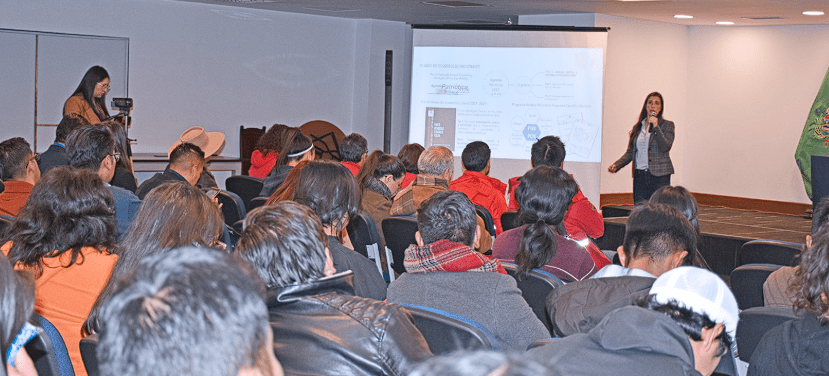 La socialización comenzó con la exposición del Especialista en Gestión del Conocimiento de la ABEN, Santos Diamantino, quien presentó el documento sociocultural de la institución. Durante su intervención, explicó el significado del lugar donde se desarrolla el proyecto: Parcopata, una tierra cargada de historia, de vientos fuertes (ch’amani wayra) y de leyendas andinas.