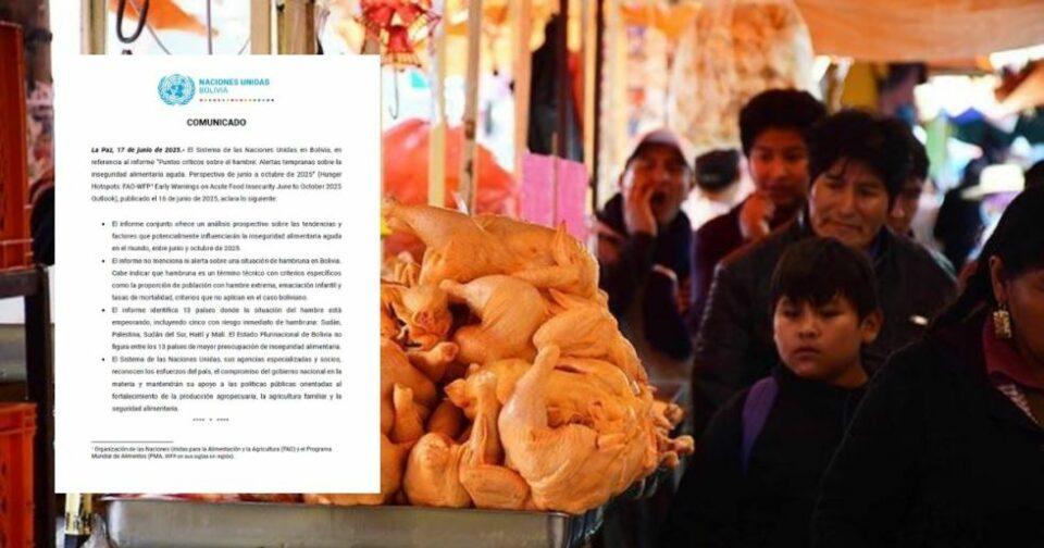 La Paz, 17 de jun 2025 (ATB Digital).- El Sistema de las Naciones Unidas (ONU) en Bolivia emitió un comunicado oficial en el que aclara que el país no enfrenta un riesgo de hambruna, en respuesta a la interpretación de un informe internacional sobre inseguridad alimentaria. El pronunciamiento se refiere al reporte “Puntos críticos sobre el hambre: Alertas tempranas sobre la inseguridad alimentaria aguda”, elaborado por la FAO y el Programa Mundial de Alimentos (PMA), y publicado el 16 de junio de 2025. Según el documento, Bolivia no figura entre los 13 países identificados con situaciones críticas como Sudán, Palestina o Haití. Además, se precisó que el término “hambruna” implica condiciones técnicas específicas, como hambre extrema, emaciación infantil y altas tasas de mortalidad, que no se presentan en el país.