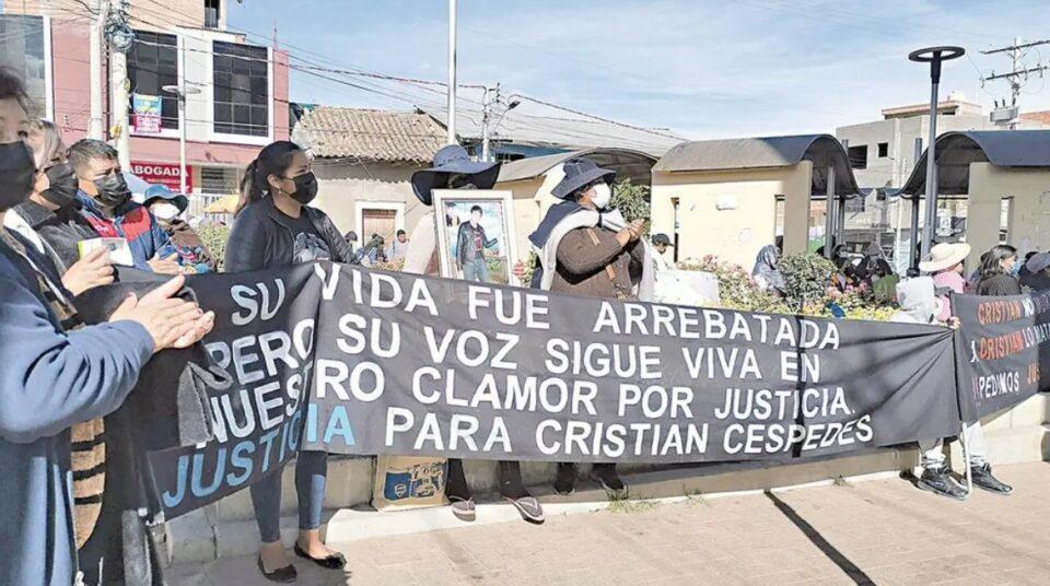 Cochabamba, 18 junio 2025 (ATB Digital).— “Los sueños no se cumplen en un cementerio”, “No fue una desgracia, fue un crimen”, “No falleció, lo mataron”. Con estas frases escritas en telas negras, familiares, amigos y vecinos de Cristian Nahuel Céspedes Zurita protestaron ayer frente al edificio judicial de Sacaba, donde debía comenzar el juicio contra dos hermanos acusados de asesinarlo hace casi 11 meses, en la zona de El Abra. La audiencia fue suspendida y reprogramada para el 25 de junio.