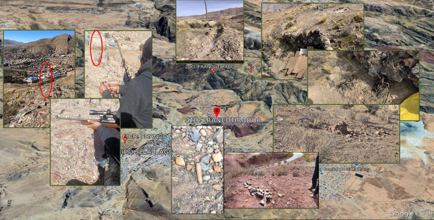 Una de esas cuatro trincheras permitía una visión general de Llallagua, que coincide con videos que mostraban a un hombre con un arma con mira telescópica, días previas a la emboscada a los policías, según las pericias del Instituto de Investigaciones Técnico Científicas de la Universidad Policial (IITCUP).