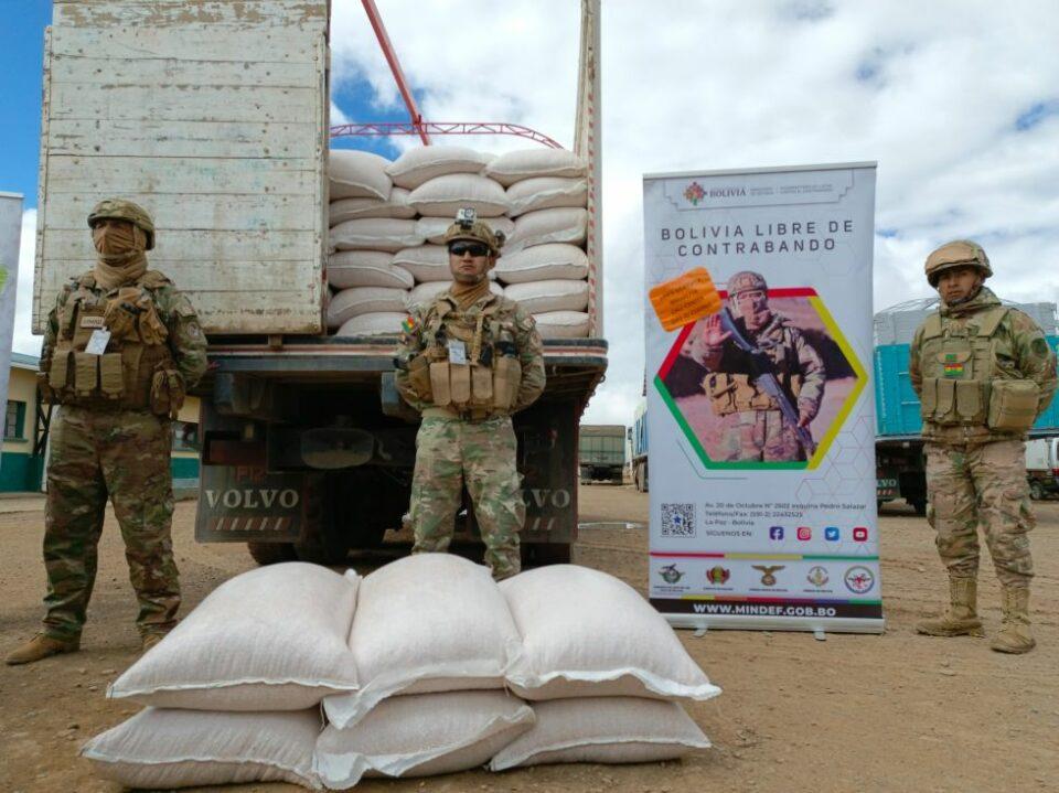 En Achacachi, se decomisó un camión que transportaba 400 quintales de maíz de manera ilegal, mientras que en el puesto de control de Guaqui se incautaron 70 garrafas de gas, 86 bidones de aceite de 5 litros, además de productos de aseo y ropa usada que intentaban ser trasladados de manera irregular.