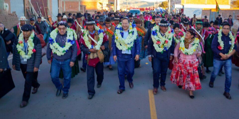 “El Gobierno nacional va a trabajar hasta el último día por el bienestar del pueblo boliviano”, señaló el mandatario en su redes sociales luego de la entrega formal de enlosetado y la construcción de pavimento “exible en las principales calles del municipio de Tiwanaku y la moderna unidad educativa Arthur Posnansky con una inversión estatal que supera los Bs 12 millones.