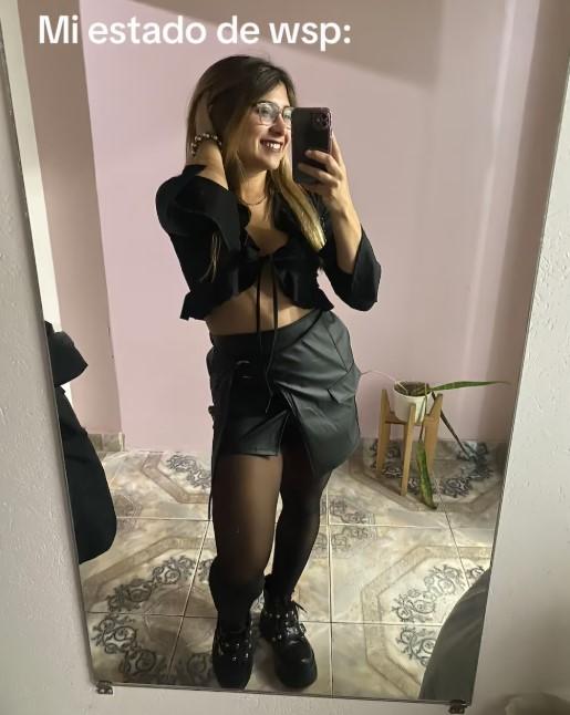 En la primera imagen, la joven aparece posando para la cámara y utiliza la foto como estado de WhatsApp. Sin embargo, lo que realmente llamó la atención no fue su pose, sino un detalle inesperado en el fondo de la imagen: una planta visiblemente deteriorada y caída.
