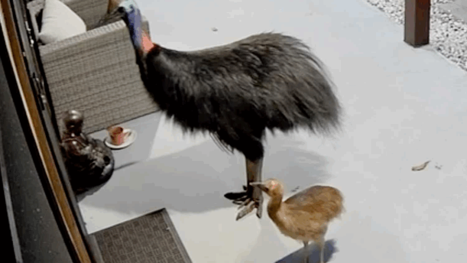 Según el organismo, el casuario adulto y su cría, acostumbrados a la presencia humana, se acercaron a la casa de la familia buscando comida. “Afortunadamente, la madre y su bebé lograron entrar [a la casa] a salvo, pero es un recordatorio importante de no interferir con la vida silvestre”, dijo el guardabosques Jeff Lewis.