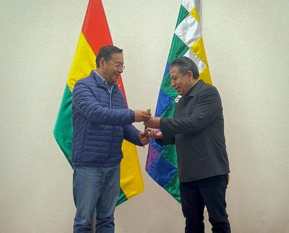 La Paz, 06 de jul 2025 (ATB Digital).- El presidente Luis Arce entregó este domingo el Bastón de Mando al vicepresidente David Choquehuanca antes de viajar a Brasil a la 17 Cumbre de los BRICS, en Río de Janeiro, programada para el 6 y 7 de julio.
