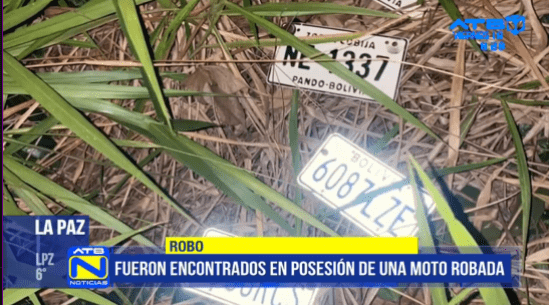 La Paz, 18 de jul 2025 (ATB Digital) .- Una pareja de policías fue sorprendida en flagrancia con una motocicleta robada y cinco placas vinculadas a otros vehículos sustraídos. El operativo se realizó en Villa Busch, Pando, y estuvo a cargo de Diprove. Ambos efectivos fueron aprehendidos y el comandante policial departamental aseguró que no tolerará hechos de corrupción en la institución.