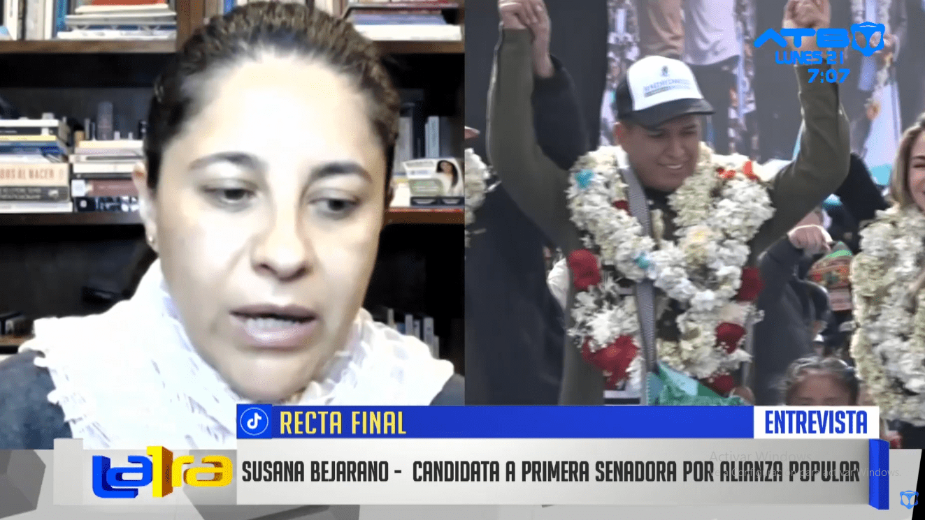 La Paz, 21 de julio 2025 (ATB Digital).- Susana Bejarano, candidata a primera senadora por la Alianza Popular, se pronunció sobre la posición de su organización política rumbo a las elecciones del próximo 17 de agosto. Entre los temas abordados destacó la ausencia de candidatos en los debates organizados por distintos medios de comunicación y las propuestas que la alianza tiene para el país.