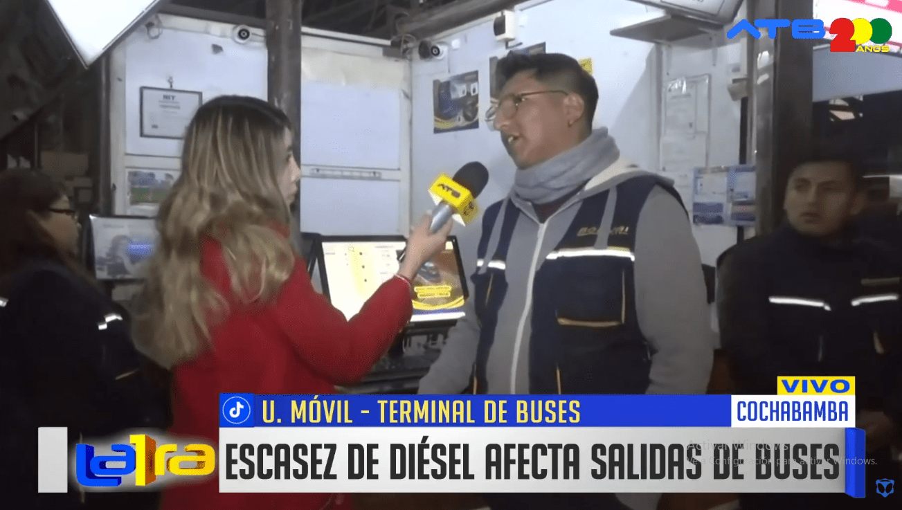 Cochabamba, 22 de julio 2025 (ATB Digital).- Una gran afluencia de pasajeros se registró en la Terminal de Buses de Cochabamba en medio de una preocupante situación, la escasez de diésel. Personal de distintas empresas de transporte interdepartamental alertó que, debido a la falta de combustible, solo están operando con el 50% de su flota, ya que varios vehículos permanecen varados en estaciones de servicio a la espera de abastecimiento.