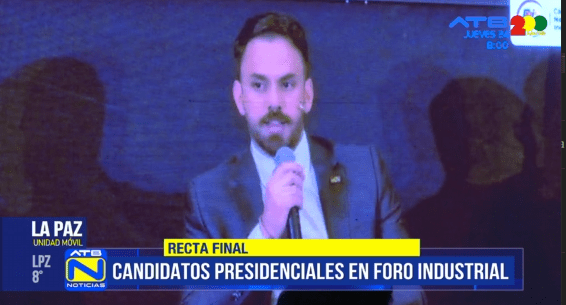 La Paz, 24 de jul 2025 (ATB Digital).- En la ciudad de El Alto se desarrolla el Foro Industrial, un espacio donde candidatos presidenciales presentan sus propuestas ante representantes del sector productivo. En esta edición, cuatro postulantes participaron del debate, respondiendo a las principales inquietudes planteadas por empresarios e industriales de la región. El evento busca conocer con mayor claridad los planes económicos de quienes aspiran a llegar al poder.