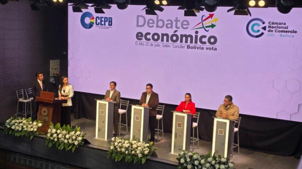 El Alto, 24 de julio 2025 (ATB Digital).- La ciudad de El Alto fue escenario de la primera parte del segundo Debate Económico organizado por la Confederación de Empresarios Privados de Bolivia (CEPB) y la Cámara Nacional de Comercio (CNC), donde representantes de cuatro alianzas políticas presentaron sus propuestas para enfrentar la crisis económica y reactivar el aparato productivo nacional.