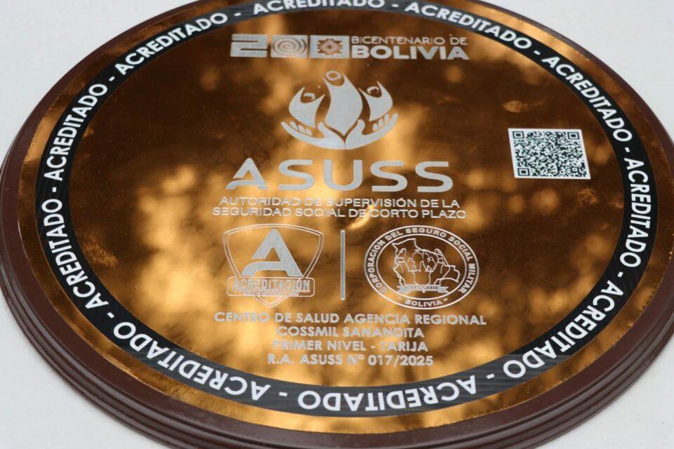 De igual manera, el Centro de Salud de la Corporación del Seguro Social Militar (Cossmil) regional Sanandita obtuvo la Resolución Administrativa N° 0017/2025 y plaqueta dorada de acreditación, constatando que el establecimiento de salud alcanzó un puntaje institucional del 93%.