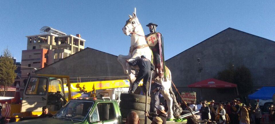 “Este mes de julio es el mes del Tata Santiago. Nosotros, como Alcaldía, pusimos a nuestros artistas quienes han realizado esta importante escultura, además de los aportes de los vecinos”, expresó.