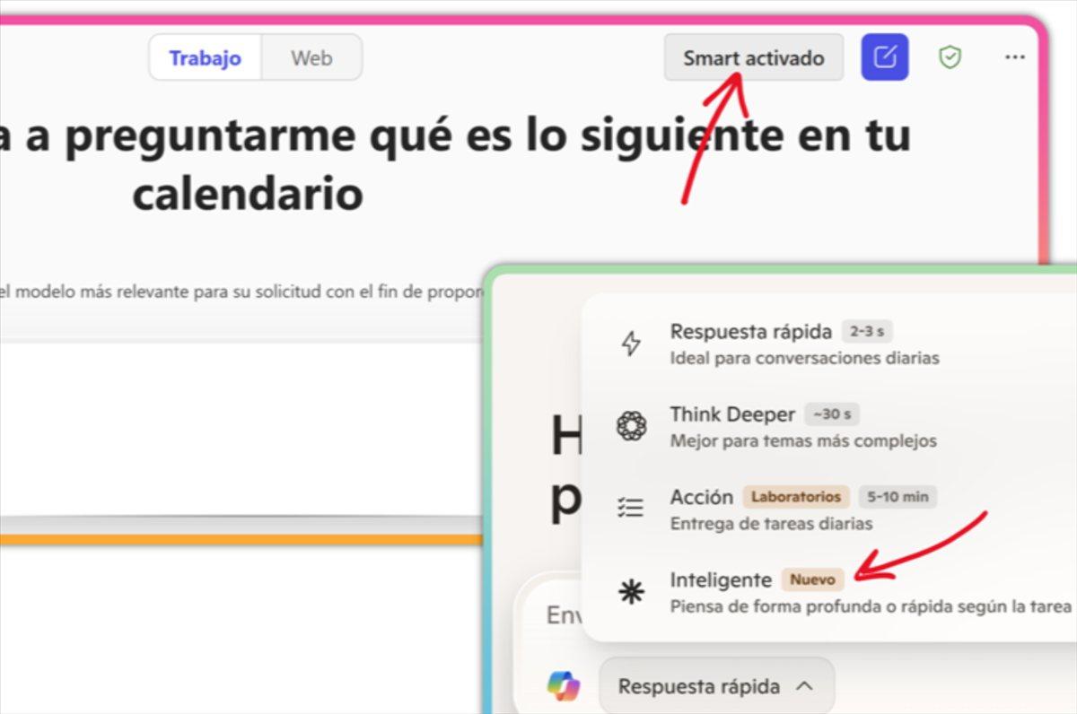 - Comprensión contextual profunda: Copilot ya no se limita a reaccionar a una pregunta directa. Con Smart, analiza el contenido y el entorno para anticiparse a lo que podrías necesitar.