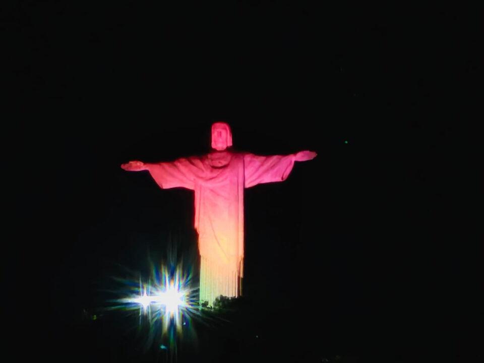 Para acompañar la noche boliviana, el famoso Cristo Redentor lució los colores rojo, amarillo y verde la bandera nacional.