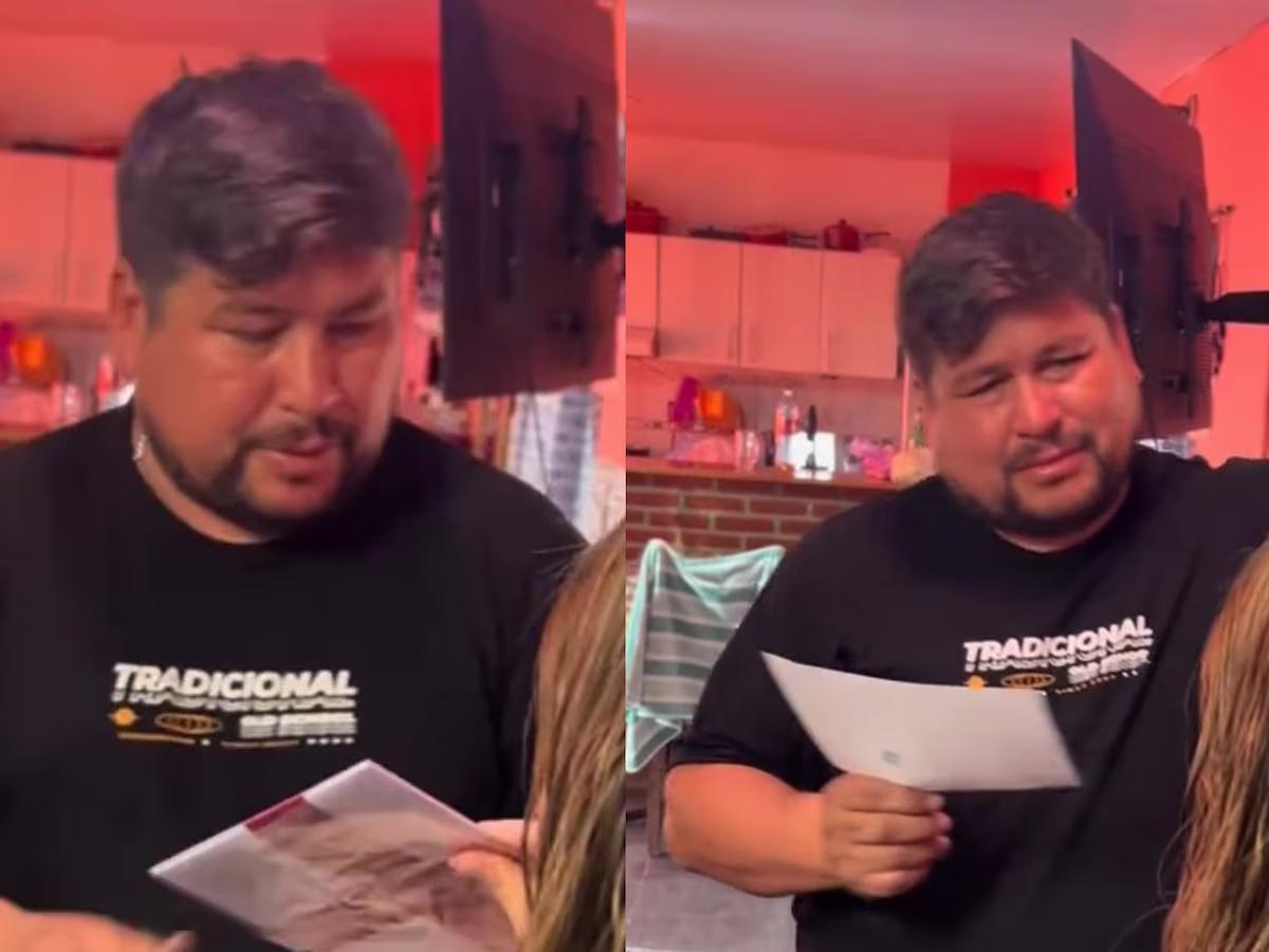 La grabación, compartida por el usuario @thiagovillord0, muestra el momento en que el protagonista recibe un sobre con un regalo inesperado. Al abrirlo, descubre una imagen en la que aparece junto a su padre, quien falleció antes de poder asistir a su casamiento
