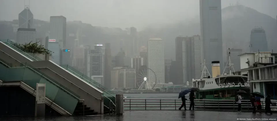 Los cielos ennegrecidos descargaron lluvias torrenciales sobre Hong Kong y las ciudades tecnológicas que rodean el delta del río Perla, en el sur de China, lo que provocó el cierre de hospitales, escuelas y tribunales, y convirtió las numerosas escaleras del centro financiero asiático en cascadas.