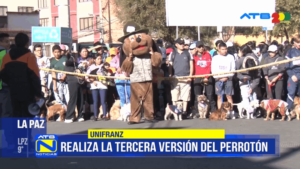 La Paz, 10 de ago 2025 (ATB Digital).– La tercera versión del Perrotón Unifranz se realizó este domingo 10 de agosto con el objetivo de apoyar a albergues y promover la tenencia responsable de animales. La carrera, que inició en la plaza Lira y concluyó en la puerta de la Unifranz, contó con la participación de Alex, el perro protagonista de la película El ladrón de perros.