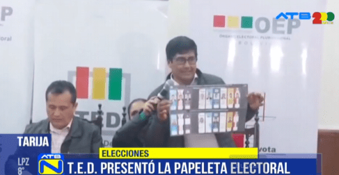 Tarija, 11 de agos 2025 (ATB Digital) .-El presidente del Tribunal Departamental Electoral (TED) de Tarija, Óscar Gutiérrez, informó sobre la presentación oficial de la papeleta de votación que se utilizará en la próxima jornada electoral.