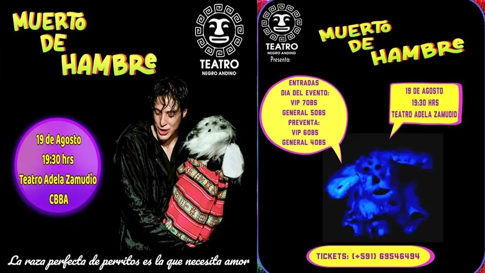La Paz, 13 de ago 2025 (ATB Digital) .- Teatro Negro Andino presenta “Muerto de hambre”, una historia asombrosa y emocionante que fusiona técnicas de teatro negro, marionetas, pantomima y actuación para llevar al público a una aventura llena de sorpresas.