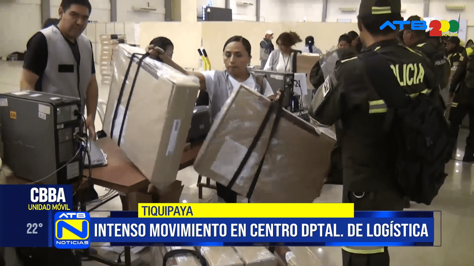 Cochabamba, 16 de ago 2025 (ATB Digital).- Este sábado 16 de agosto se desarrolla un intenso operativo de distribución del material electoral para las elecciones generales de este domingo. En Tiquipaya, Cochabamba, el centro de logística del Tribunal Electoral Departamental coordina la entrega de las maletas electorales con el acompañamiento de efectivos policiales que brindan seguridad durante el traslado.