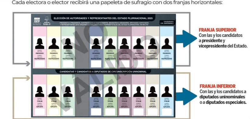 Los votantes pueden hacer dos votos; la papeleta de sufragio tiene dos franjas. En la franja superior se podrá marcar para elegir al Presidente y Vicepresidente. En la inferior, el voto es para los diputados uninominales o de circunscripción especial.