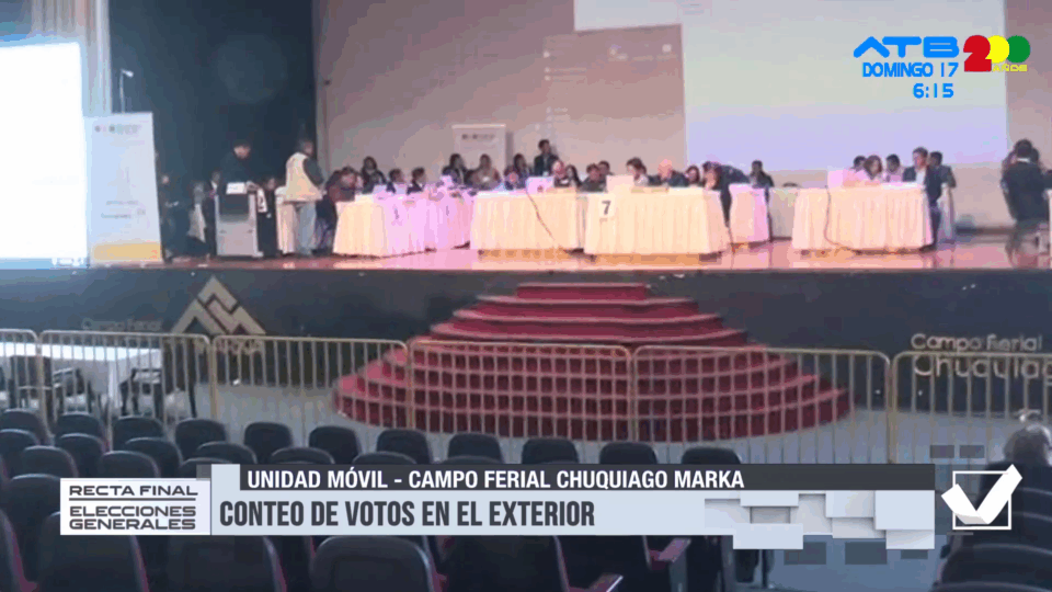 Mientras tanto, el conteo de votos del exterior ya se ha iniciado en el Campo Ferial Chuquiago Marka, donde también se concentran los observadores y autoridades electorales.
