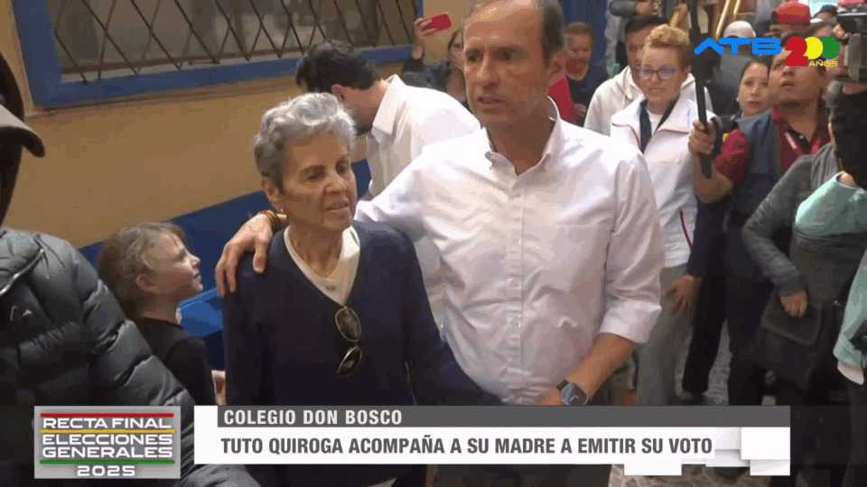 Cochabamba, 17 de ago 2025 (ATB Digital).- El candidato presidencial Jorge “Tuto” Quiroga acompañó este domingo a su madre a emitir su voto en el recinto electoral del colegio Don Bosco, en la ciudad de Cochabamba.
