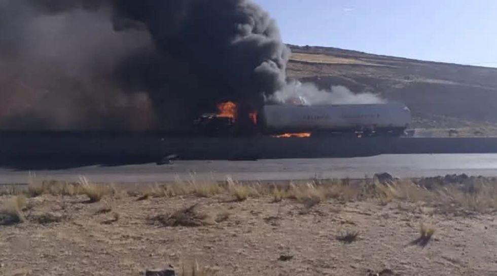 La Paz, 21 de ago 2025 (ATB Digital) .- Un camión cisterna se incendió este miércoles tras sufrir un accidente de tránsito en la localidad de Calamarka, ubicado en la carretera La Paz – Oruro. De este hecho, al menos dos personas resultaron heridas.