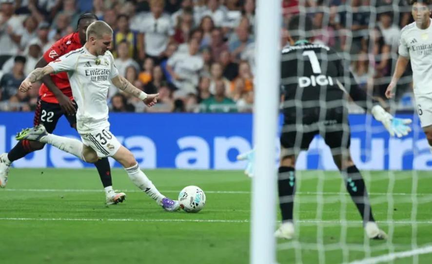 El argentino, tercer extranjero más joven en debutar con el club blanco (18 años y 5 días), se mostró activo en los 30 minutos — incluido el tiempo de descuento– en los que participó el martes, durante la victoria de su equipo ante Osasuna (1-0) gracias al tanto del francés Kylian Mbappé.