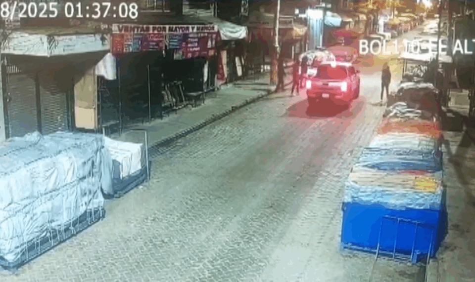 El hecho ocurrió cerca de las 01.30 en inmediaciones de la calle 4, donde la víctima se encontraba caminando junto con otras personas, según imágenes de una cámara de seguridad, informó el director departamental de la Fuerza Especial de Lucha Contra el Crimen (FELCC), coronel Gabriel Neme.