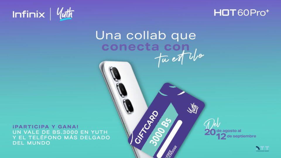 La Paz, 22 de ago 2025 (ATB Digital).- INFINIX, líder mundial en tecnología móvil innovadora y ahora la marca de smartphones en ascenso en Bolivia junto a Yuth, la principal tienda de moda urbana y lifestyle en Bolivia, anuncian una colaboración exclusiva para sortear el nuevo Hot 60 Pro+, el smartphone con pantalla curva 3D más delgado del mundo, junto con 3000 Bs. en consumo en tiendas Yuth a nivel nacional. Esta alianza fusiona tecnología de vanguardia con un estilo juvenil y audaz, ofreciendo a los jóvenes bolivianos la oportunidad de ganar un dispositivo revolucionario y beneficios exclusivos de compra.