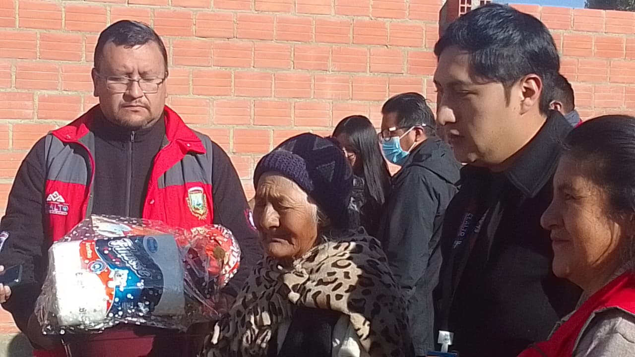 “En este momento me siento muy bien, porque han llegado con ayuda y también para vacunar a mis perritos. Me siento muy feliz no sé cómo agradecerles. Dios les bendiga a ustedes y a la Alcaldesa”, alcanzó a decir la mujer de pollera que nació en junio de 1953 en Viacha.