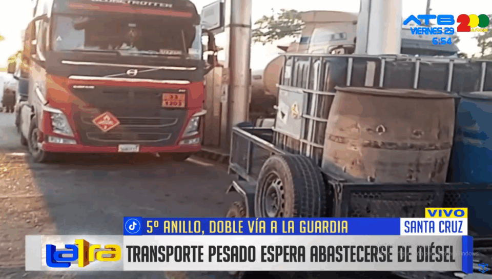 Santa Cruz, 29 de agosto 2025 (ATB Digital).- En el surtidor de Yacimientos Petrolíferos Fiscales Bolivianos (YPFB), ubicado en el quinto anillo de la Doble Vía la Guardia en Santa Cruz, se registran largas filas de vehículos que intentan abastecerse de combustibles. Según el reporte, varios conductores llevan días esperando; uno de ellos afirmó que permanece en el lugar desde hace tres días.