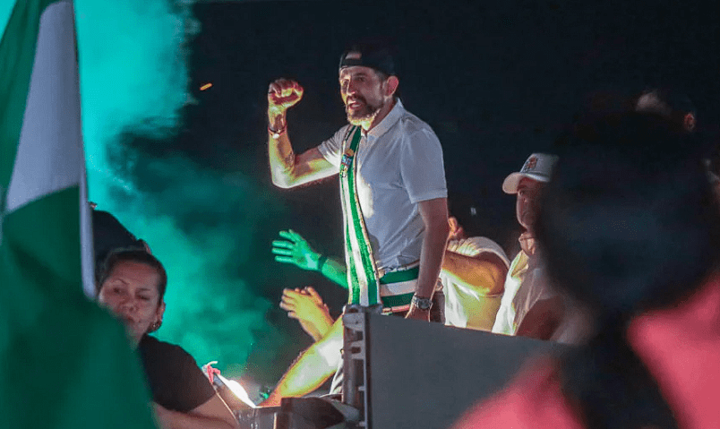 Desde un camión con un equipo de sonido, celebró que su movimiento “terminó con el masismo” y advirtió que “si nosotros fallamos, el masismo puede resucitar y eso no podemos permitirlo”.