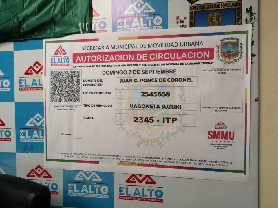 El Alto, 1 de septiembre 2025 (ATB Digital).- El secretario Municipal de Movilidad Urbana, Rossember Carrasco, informó que para el Día del Peatón 7 de septiembre solo se otorgarán licencias de circulación en casos excepcionales, por ejemplo, a pacientes con tratamientos médicos de diálisis y personas que deben viajar al exterior rumbo al aeropuerto.