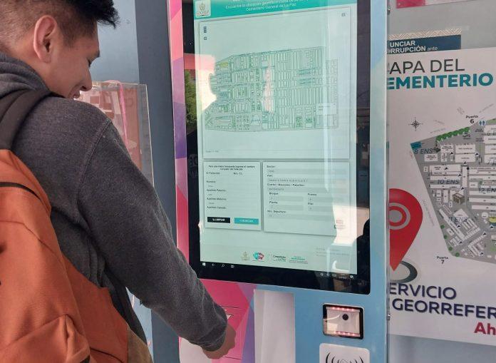 La Paz, 01 de sep 2025 (ATB Digital)-. Caminar entre mausoleos, pabellones y pasillos del Cementerio General de La Paz puede ser un laberinto; los visitantes suelen preguntar a cuidadores o siguen la ruta de una visita pasada, esa búsqueda terminó. La Alcaldía habilitó una pantalla digital que, con unos clics, revela el lugar exacto de la sepultura y entrega un ticket con el croquis.