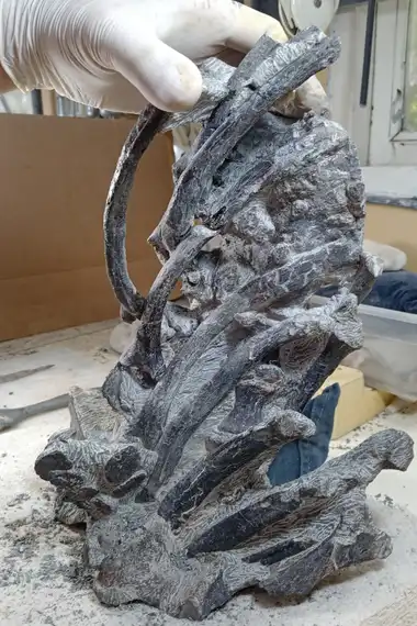 Lio, experto en fósiles de cocodrilos, lo identificó como un cráneo de cocodrilo. Además del cráneo, también excavaron entre las rocas el esqueleto parcial del reptil, que parecía más grande y mucho más completo que cualquiera que hubieran visto antes.
