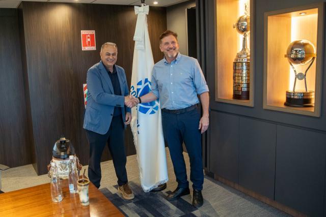 “¡Recibí la visita del Presidente de la Federación Boliviana de Fútbol, Fernando Costa, en el marco de los preparativos para la gran final de la CONMEBOL Sudamericana en Santa Cruz de la Sierra!”, posteó el titular confederativo.