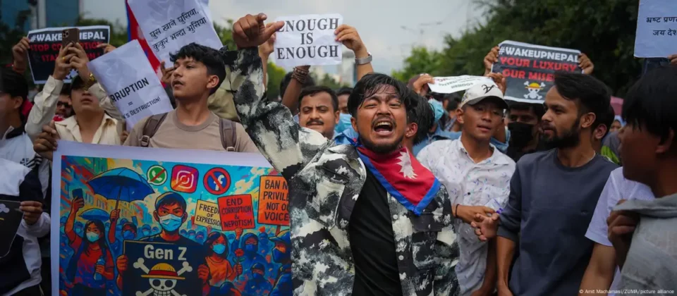 Miles de activistas salieron a la calle para protestar por la prohibición gubernamental de 26 plataformas de redes sociales no registradas, entre ellas Facebook, Instagramy X. Los manifestantes, que portaban pancartas condenando la corrupción, consideran el bloqueo “un ataque directo a la libertad de expresión”.