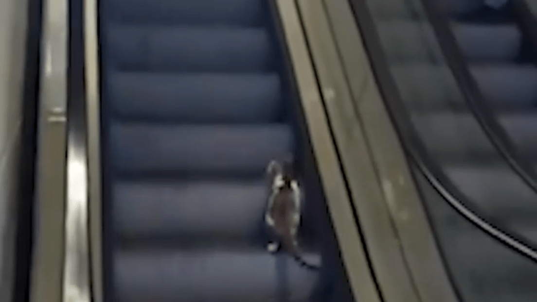 Transeúnte ayuda a gato que eligió la escalera mecánica equivocada